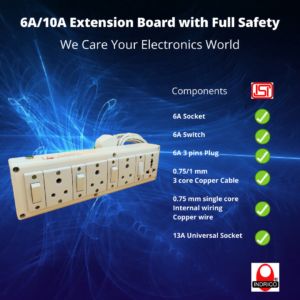 This category of extension boards will be perfect for laptop, office desk, music system, desktop computer, printer, UPS etc. The maximum load capacity is 1200 watts.