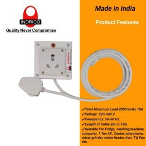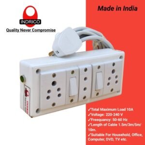 - INDRICO® Extension Board with Long Wire 2 Universal & Normal Socket 1 Switch 6 Amp (White) (5 Meter)Original price was: ₹3,999.00.₹825.00Current price is: ₹825.00. Add to cart