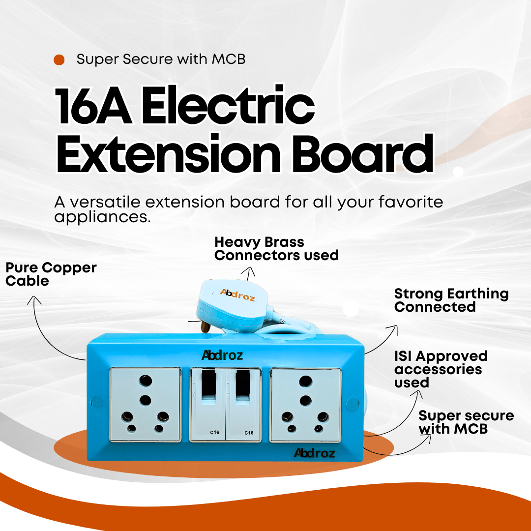 - Uses: This ABDROZ 16a extension heavy duty switch board protects your appliances from electrical short-circuit because it has MCB. This 16 amp extension board anchor is perfect choice for AC, refrigerator, microwave, induction cooker, washing machine, electric iron, mixer grinder, TV, Computer or any other home appliances under 1800 for 1.5mm wire/2800 for 2.5 watts.