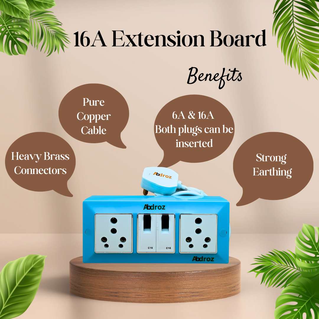₹699.00 – ₹999.00Price range: ₹699.00 through ₹999.00ABDROZ 16A Electric Extension Board with Individual Switches MCB Heavy Duty 3 Core Pure Copper Cable 16A 3 Pins Plug Sky Blue Pack of 1