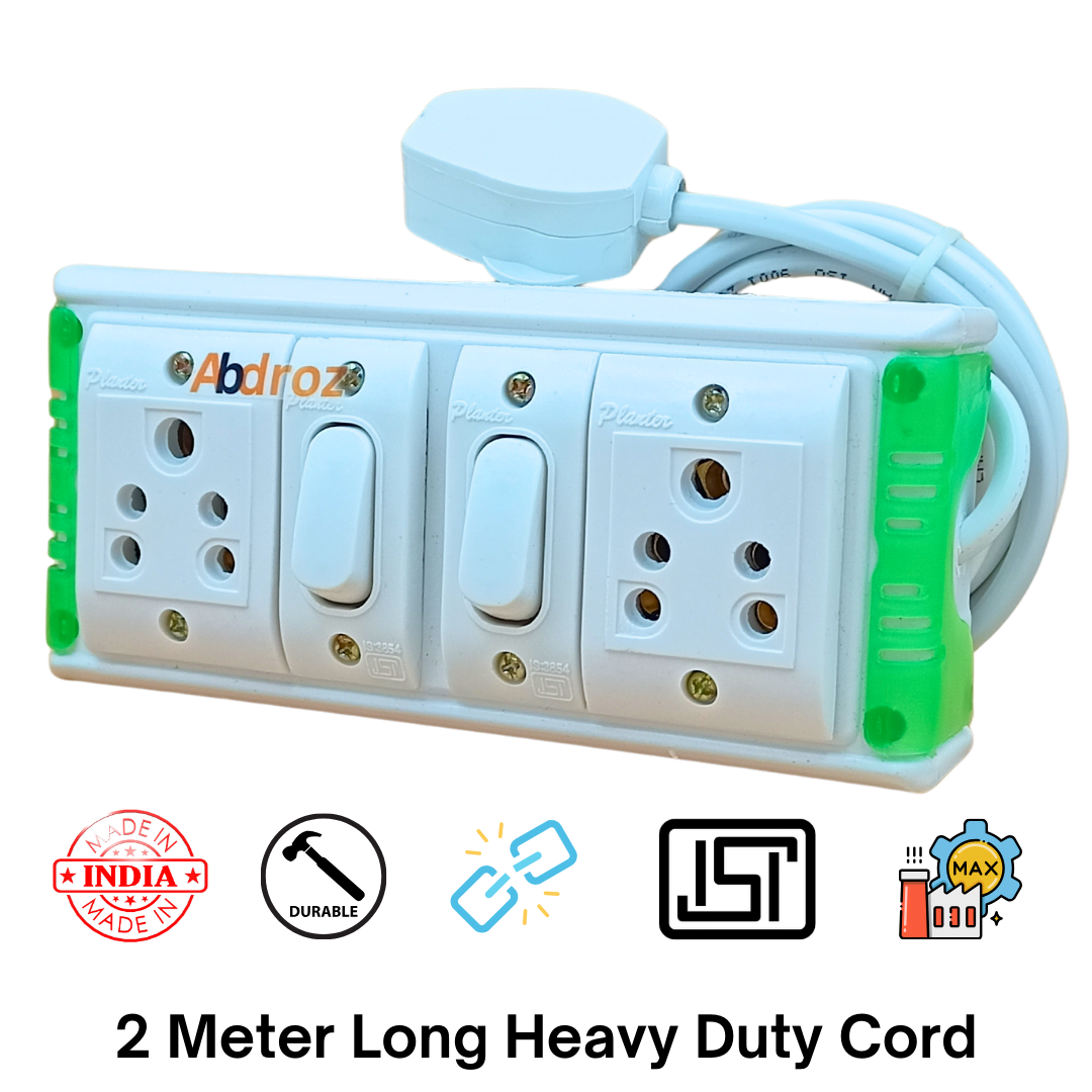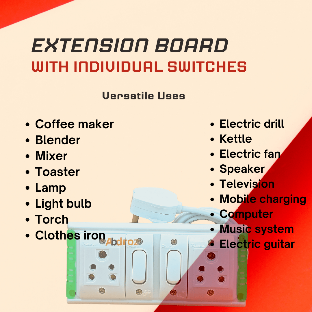 ABDROZ Electric Extension Board with Individual Switches 2 Meter Long Copper Cable.