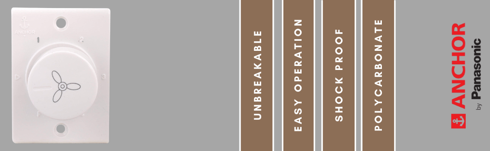 This fan regulator is 100W, is part of the flagship range of switches and accessories from anchor and caters to the electrical requirements of residences, commercial and hospitality sector.