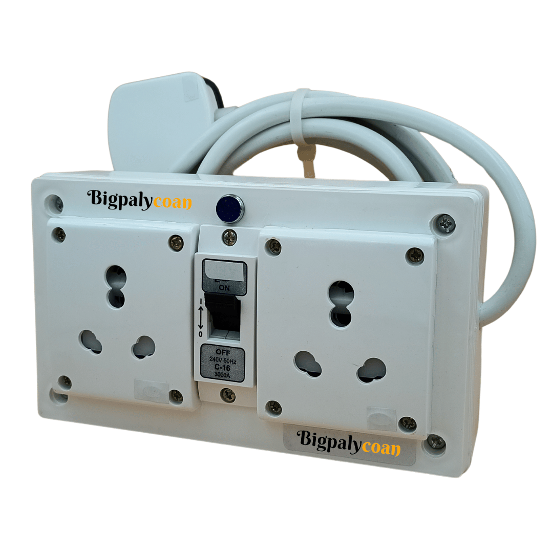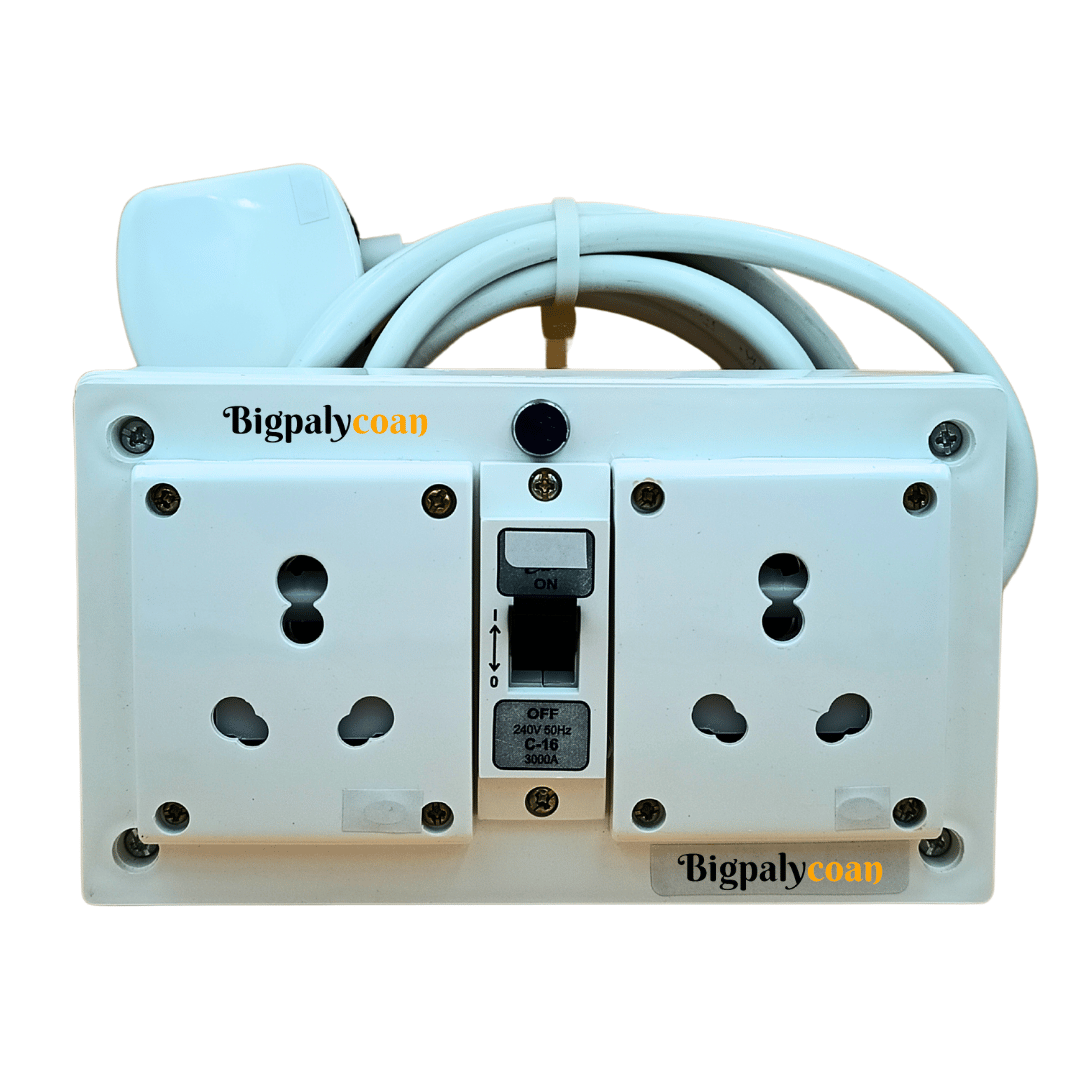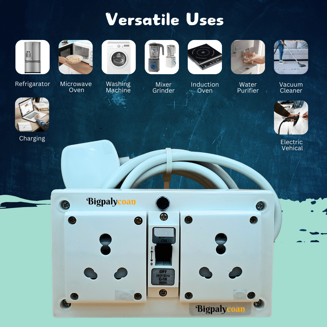 Uses: This BIGPALYCOAN 16a extension board with mcb protects you and your appliances from electrical short circuit because it has brass connectors. Ac switch board with mcb 1.5 ton is perfect choice for AC, refrigerator, microwave, induction cooker, washing machine, electric iron, mixer grinder, TV, Computer or any other home appliances under 2800 watts 240 volts.