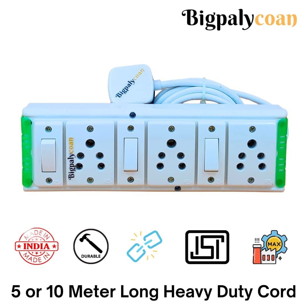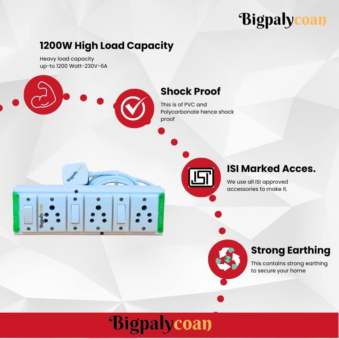 Why choose the Bigpalycoan Extension Box ? Handcrafted products Strong internal wiring High load bearing capacity. Easy and low cost to repair Mounting holes on the back can mounted on wall with Screw and nylon plug ISI marked Wire with ISI 3 pin Power plug. Highly recommended product with limited technical mastery An Popular Branded product 10+ years old brand of West Bengal. 1000+ Extension Boards to choose from Genuine 12 months replacement warranty. Claim it from the brand website. MADE IN INDIA