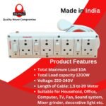 -82%- INDRICO 3 Pins Multi Outlet Extension Boards with Individual Switch White contains 4 ISI marked sockets and 4 ISI marked branded switchs.