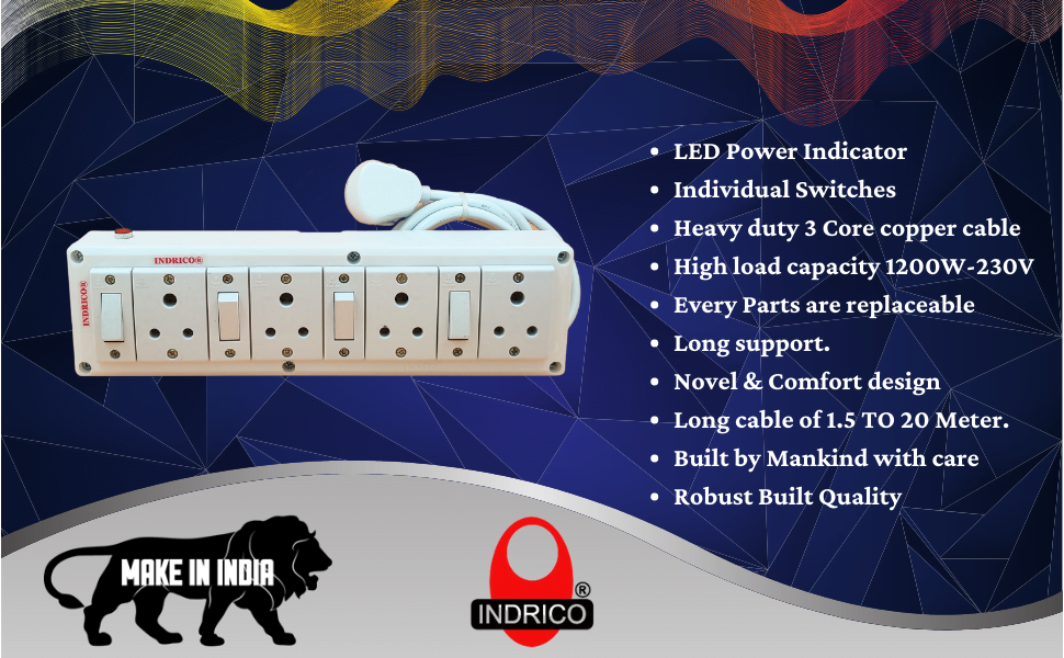 - INDRICO 3 Pins Multi Outlet Extension Boards with Individual Switch White is idle for TV, Iron, Fan, Computer, Mobile charging, LED Lamp, Decorative lamp, Laptop charging, any light home appliances.