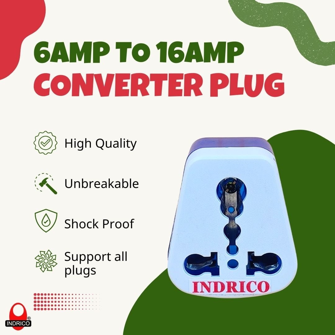 - Problem solving Uses: It has observed that generally every house has 6-amp socket in wall switch board, hence you cannot use heavy duty extension boards or appliances which contains 16A big plug top in that socket. So, to solve this issue INDRICO brings these 6 amps to 16-amp conversion plug. Through this plug, you can convert your 16A big plug into 6A plug. Now you can able to use those heavy appliances in your wall switch board.