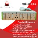 The INDRICO Extension Boards provides power to your Normal appliances & gadgets like Vacuum Cleaner, Washing Machine, Refrigerator, Television, Music System, Clothing Iron, Dryer, Computer PC, Laptop, Drill Machine, Cutter Machine, Juicer Mixer Grinder, Toaster, Music Instruments, Chargers and all Types of Peripherals and Machines.