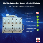 INDRICO Electric Switch Board is attached with 6A 3 pin plug at the end of the cable.