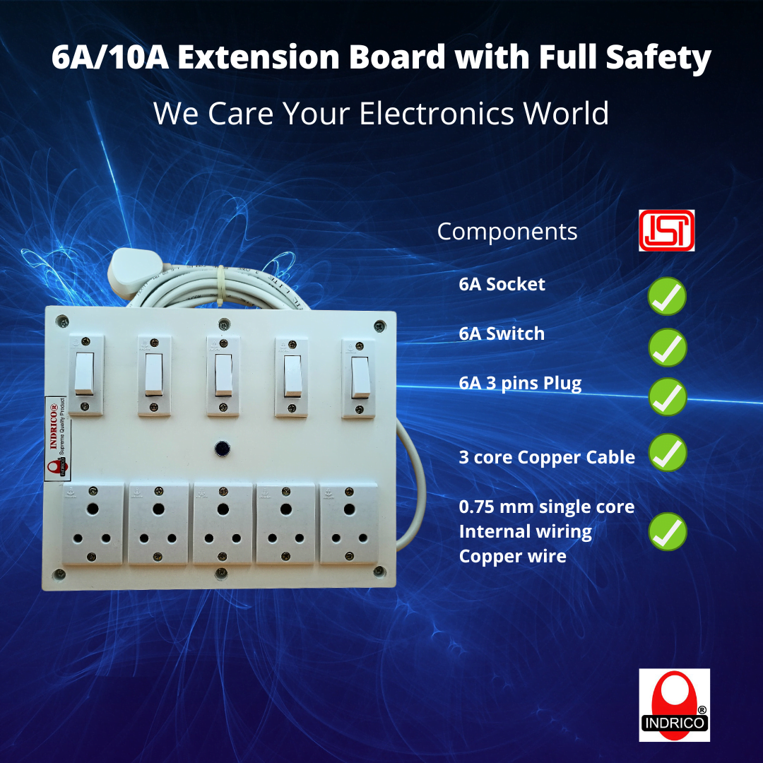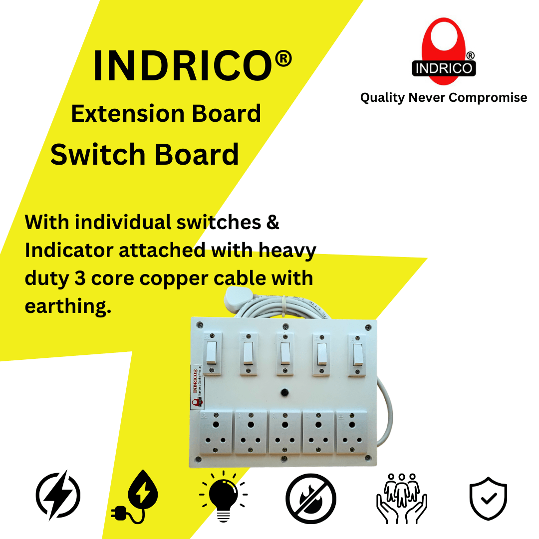 The INDRICO Electric Switch Board is capable to use in normal Appliances like Computer, Refrigerator, Washing Machine, Water Heater, Decorative lights, Halogen, Chimney, cook tops, Microwave, connecting machines, laptop and mobile charger and also in other applications of power supply need.