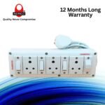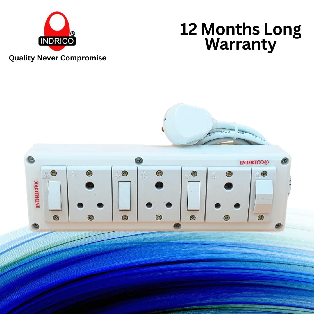 INDRICO Electrical Power Junction Box with Individual Switches Sockets, Long Wire Cable Wall fitting Board Electric Extension Multi Outlets Spike Guard PVC White Pack of 1