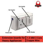 - INDRICO Extension Board with long wire contains one Anchor 16A Socket attached with 16A Switch of anchor and a LED indicator with 1.5 mm 3 core pure copper wire.