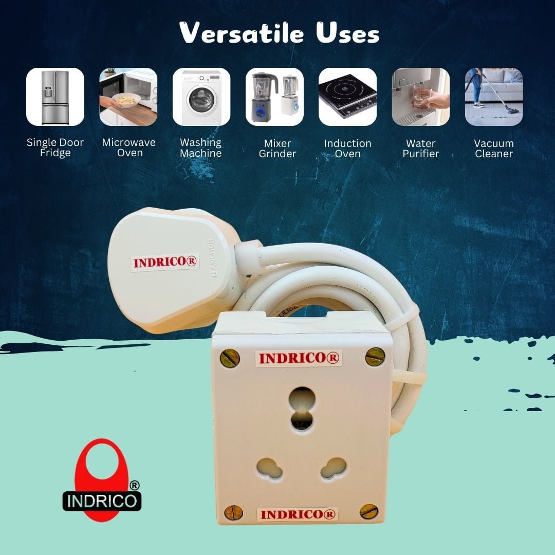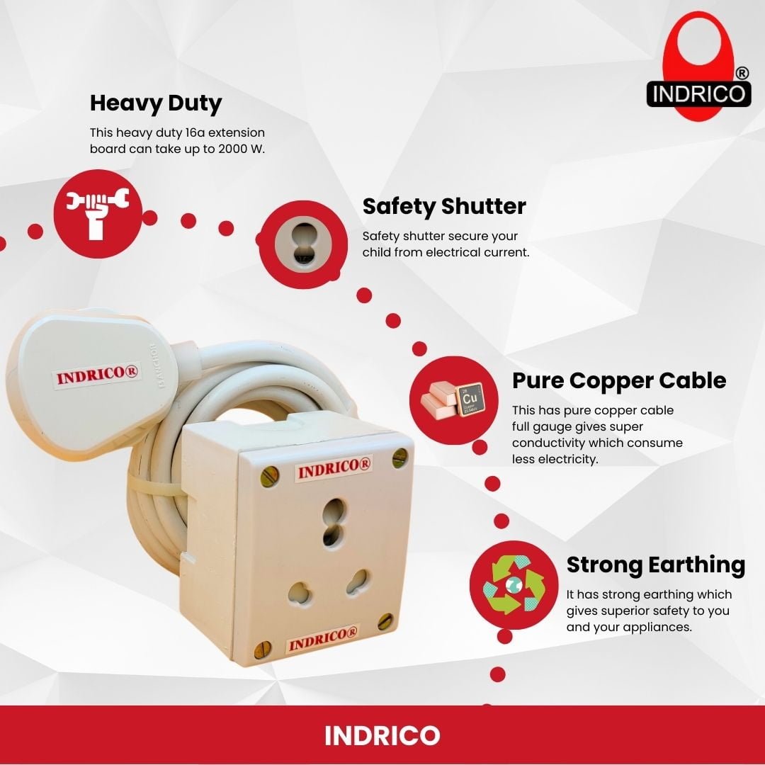 - Uses: This Indrico 16a extension heavy duty board protects you and your children from electrical shock because it has safety shutters. This 20a extension board anchor is perfect choice for Portable AC, refrigerator, microwave, induction cooker, washing machine, electric iron, vacuum cleaner, mixer grinder, TV, Computer or any other home appliances up-to 2000 watts.