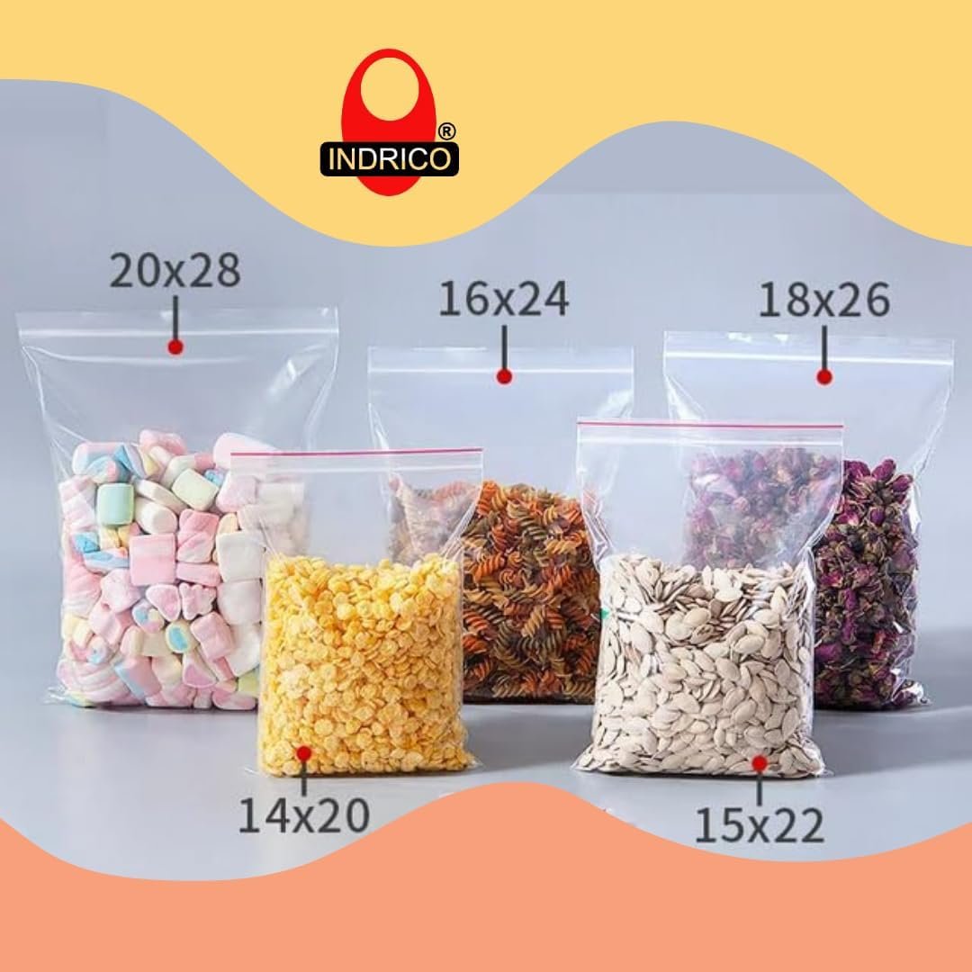 INDRICO Plastic Zip Lock Pouch Bags for Reusable Self-Seal Storage Transparent (Pack of 100) (16 X 20 INCH)