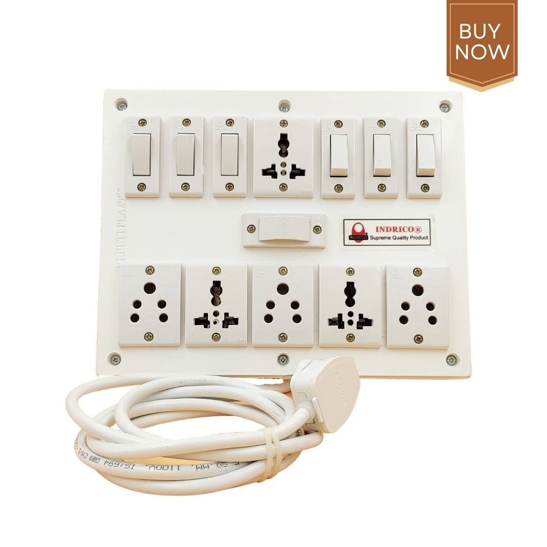 -75%Materials: INDRICO extension board with individual switch is built with branded ISI marked 6A sockets and attached with branded ISI marked individual 6A switches. This extension board is made of strong white PVC