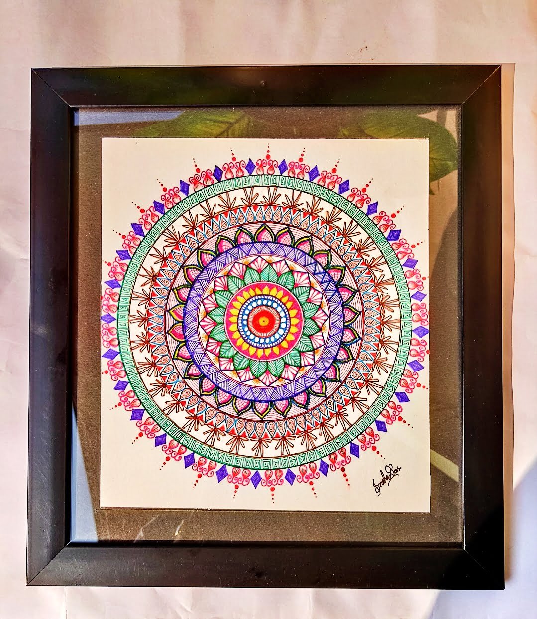 Description: About the drawing: The mandala drawing fully original, handmade. Green and safe materials: Made with an environment and home friendly reclaimed wood. Stylish and Elegant: Make your wall look stylish with our elegantly designed decorative wall hanging. Vibrant and natural: Made with vibrant and natural colours with the inspiration from nature to bring your wall to back to life. Easy to handle: Hook at the back and packing material that keeps your product intact. Perfect gift: A perfect gift for everyone and every occasion. Our wall hangings make an ideal such as birthday, festival, marriage, anniversary, as well as wall decor for living room, bedroom, kitchen, dinning room, office, hotel, restaurant. Features & details: Size Stretched and framed, ready to hang. Wrapping in soft paper and packed with bubble wrap for reaching you safely. Material: Reclaimed wood. Instruction: Hook attached at the back, for ease of use. 0ur process All products are hand made in India with love and care. Each product is made just for you when you place an order. It will be made in a sustainable and a more personal manner and hand crafted. Just the way it should be.