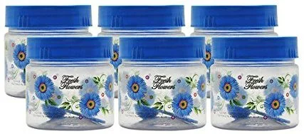 This plastic small container is appropriate for kitchen storing masala. This container easily can contain 300-350 ml. It is beautiful that is why it increases the beauty of your kitchen. It is made of high quality radical free plastic. This is odorless.