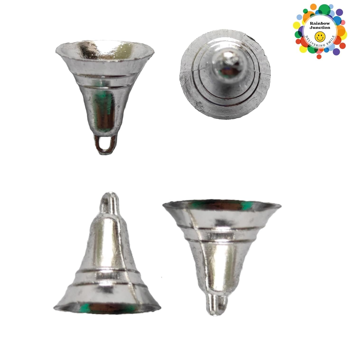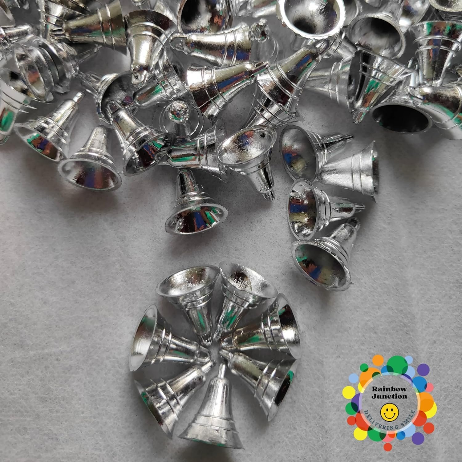 Rainbow Junction® 50pcs Plastic Bell for DIY, Art, Craft, Home Decor, Festive Decor, Christmas Tree Decoration or Other Craft Work (Silver)