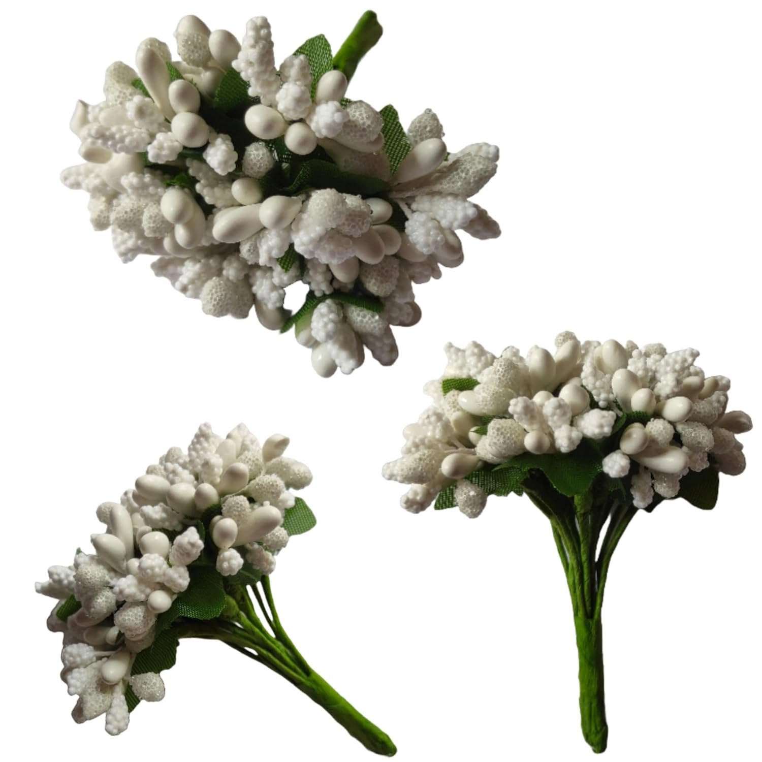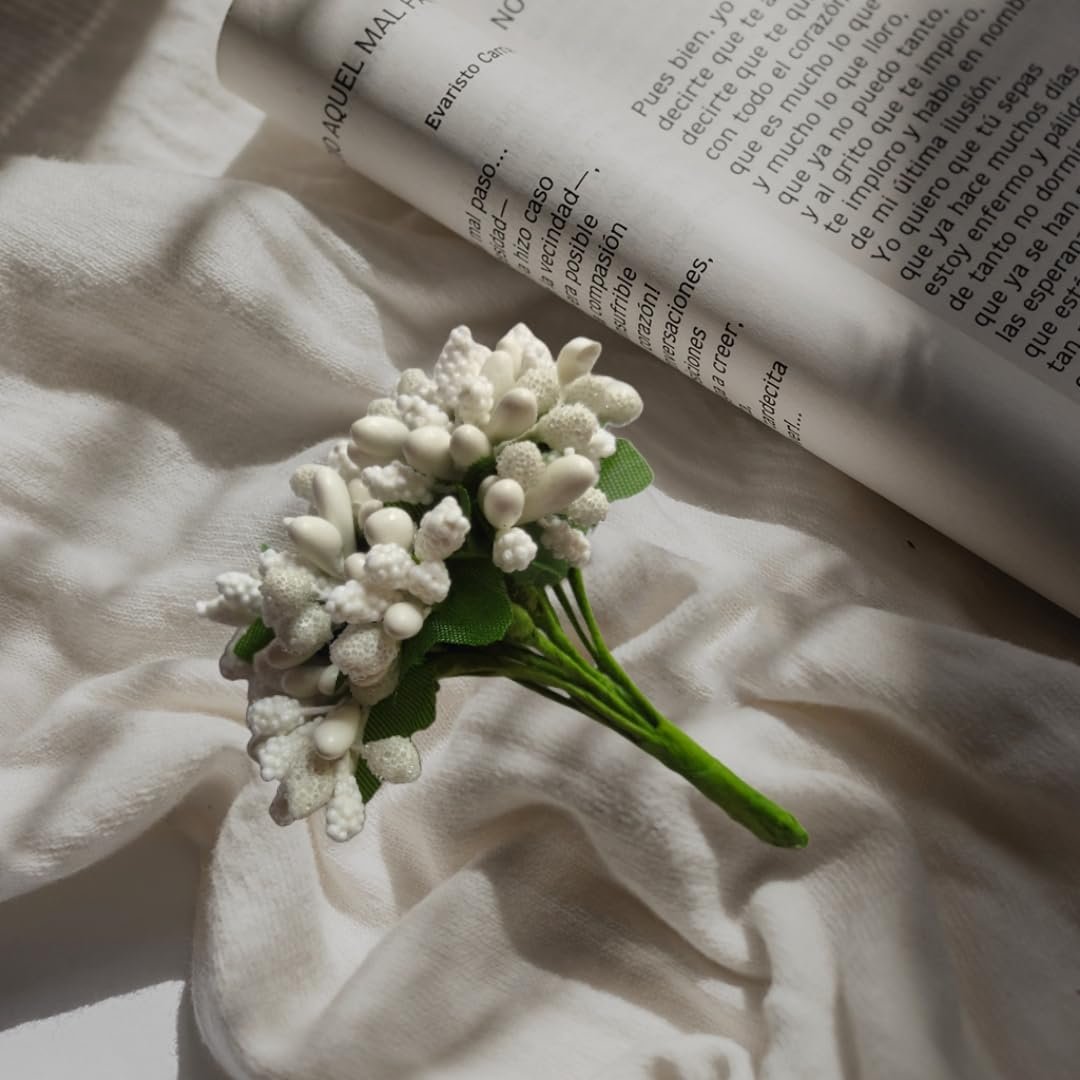 Rainbow Junction® Artificial White Pollen Flower for DIY Craft, Jewellery Making, Hair Accessories, Home Decoration (White,6 Bunch of 12 Pollen Each, 72pcs)