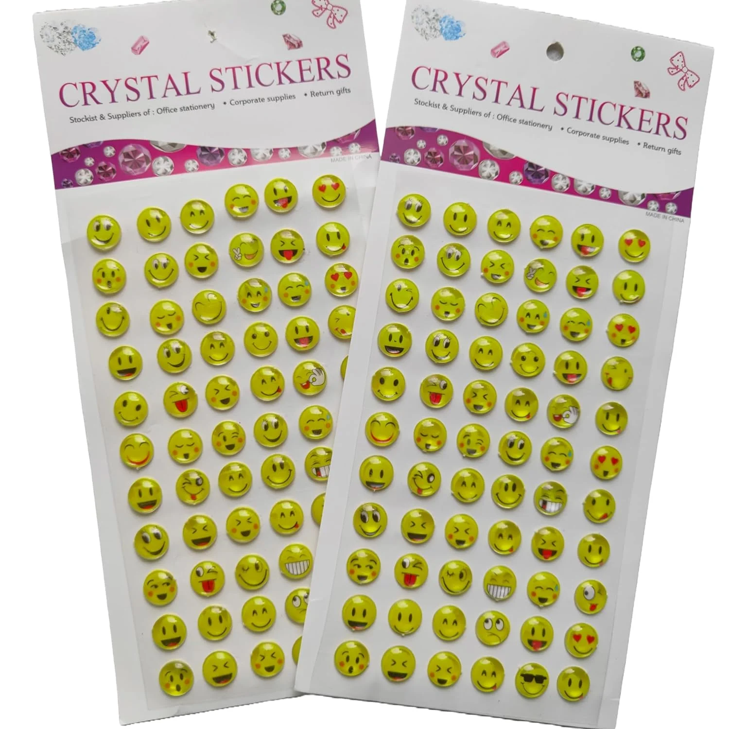 Rainbow Junction® Crystal Smiley Emoji Face Expression Funny Art N Craft School Teachers Office Stickers Sheet of 2 (132 Stickers, 66pc Each Sheet, Self Adhesive)