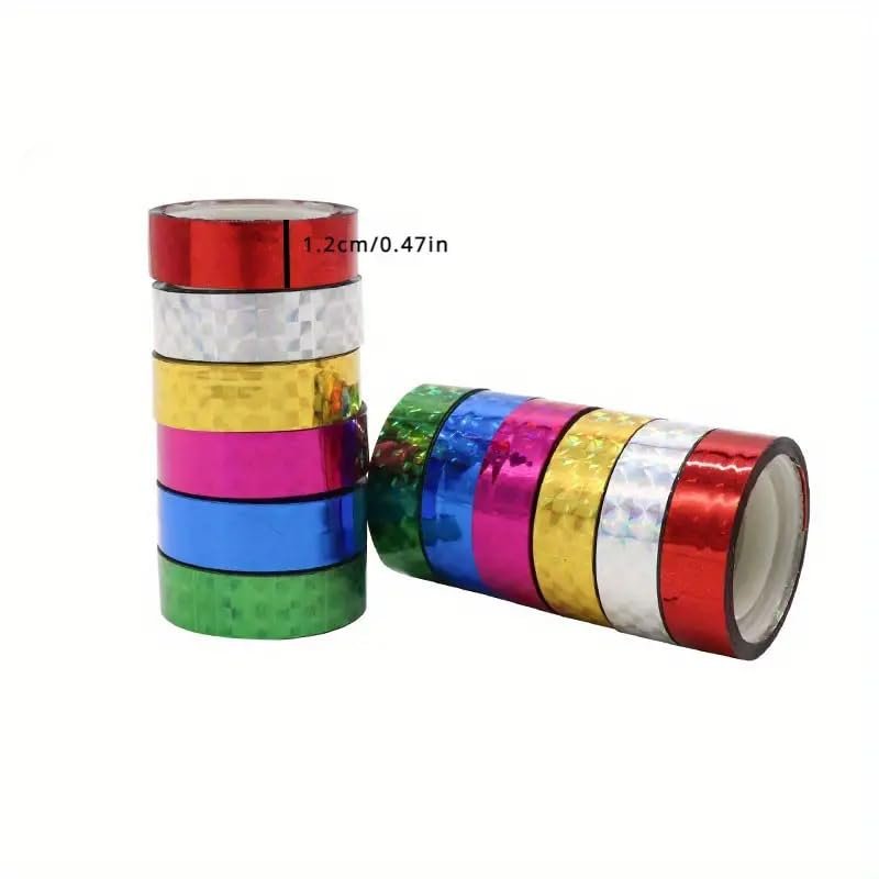 • Holographic Tape Set of 12 Rolls, Decorative Holographic Design Masking Tape Sets for Craft, Kids, Scrapbook, DIY, and Gift Wrapping.