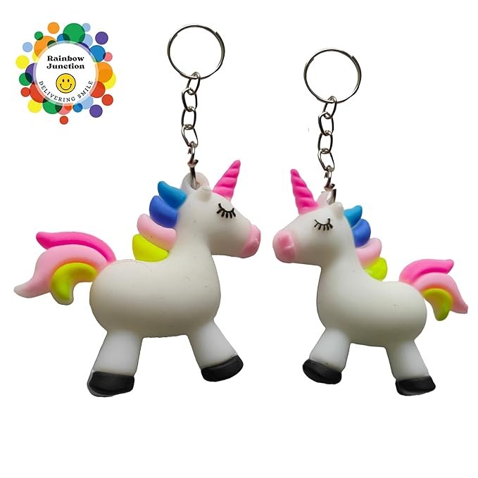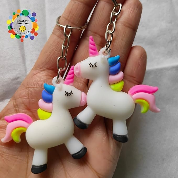 RAINBOW JUNCTION® Unicorn Key rings Suitable For Car Bike Key Chains, Bag Charms, Gifts, Bag Pendant, Key Organizer for Home Key, Student Bag, Car Charms, Kids Gifts (2pcs,White)